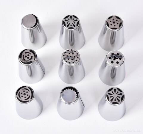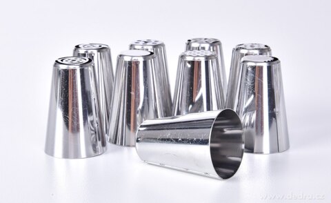 Sada 9 nerezových kytičkových špiček CREMO pro precizní zdobení dortů, cupcaků a zákusků. Vytvoří jemné květy, lístky i trávu jedním tahem. Odolné a snadno čistitelné.
