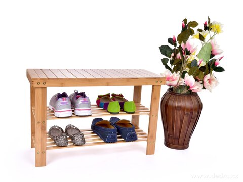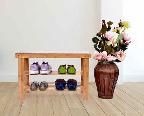 BAMBUSOVÝ BOTNÍK/LAVICE se 2 policemi. Rozměry: š 69 x h 27 x v 44 cm (rozměr mezi policemi cca 17 cm)