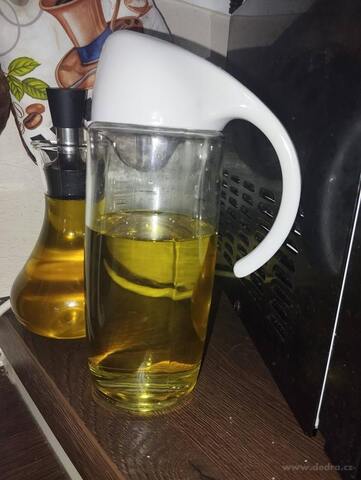 600 ml dávkovač na olej, skleněná silnostěnná nádoba s plastovým uzavíráním a automatickým překlápěcím flip víčkem.