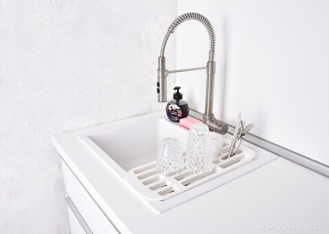 Je vhodný pro dřezy v šířce mezi 44 a 64 cm – doporučujeme předem změřit.