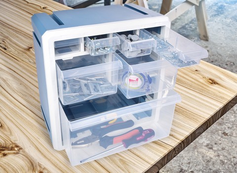Už žádný chaos v dílně! S chytrým organizérem budeš mít všechny šroubky, matice, hřebíky a drobné součástky vždy na svém místě. Díky 7 zásuvkám a modulárnímu systému si snadno vytvoříš sestavu přesně podle svých potřeb.
