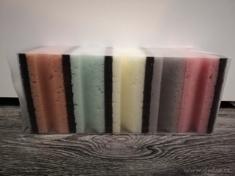 Extra velké houbičky SHINEX XL (10 × 6,5 × 4,5 cm) s ergonomickým tvarem a drsnou stranou pro snadné odstranění zaschlých nečistot. Jemná strana dobře pění a neškrábe povrchy. Balení 5 ks v pastelových barvách – ideální pro mytí nádobí i úklid kuchyně.
