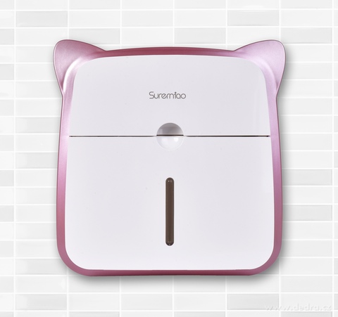 Elegantní závěsná WC skříňka SPA s růžovými oušky. Kombinuje držák na toaletní papír, šuplík na hygienické potřeby a horní odkládací plochu. Snadné otevírání TOUCH & OPEN a montáž bez vrtání pomocí nalepovacího panelu.
