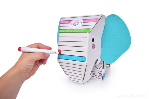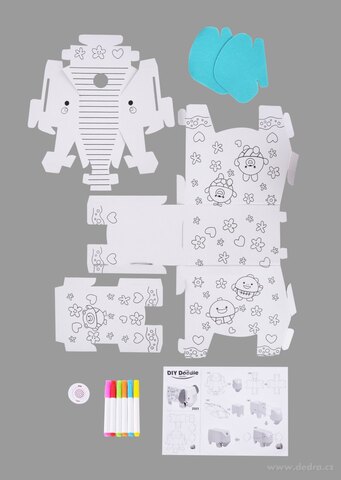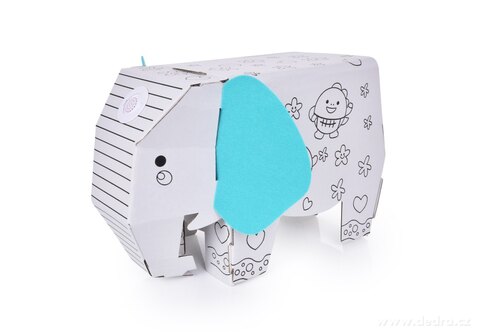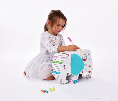 3D skládací omalovánka z tvrdého kartonu + 6 barevných fixů.