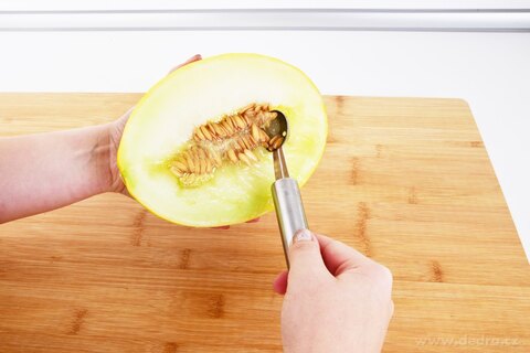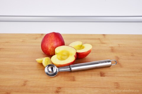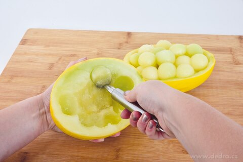 Profesionální nerezový vykrajovač kuliček GOURMET o délce 18 cm je ideální pro tvorbu dekorativních kuliček z ovoce, zeleniny, sýra či másla. Snadno si poradí s melounem, jablkem, hruškou, broskví, okurkou i cuketou, a je tak skvělým pomocníkem při přípravě ovocných mís, salátů nebo originálního servírování pokrmů.