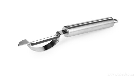 Celonerezová konstrukce z lesklé nerezové oceli zajišťuje vysokou odolnost, snadnou údržbu a hygienu při práci. Ergonomický tvar poskytuje pohodlný a bezpečný úchop, takže loupání je rychlé a efektivní.