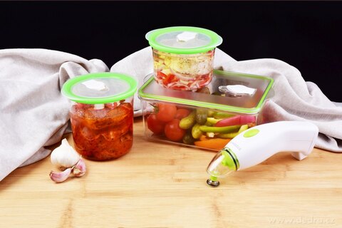 Hermetická vakuovací dóza VZDUCHOCUC 1 L z Tritanu® s ventilem a silikonovým těsněním prodlouží čerstvost potravin. Vzduchotěsná, odolná a nepohlcuje pachy – vhodná do myčky, mikrovlnky, lednice i mrazničky.