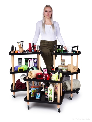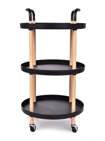 TROLLEY 3patrový pojízdný vozík s výškou 86 cm a kulatými policemi. Robustní konstrukce, 4 kolečka s brzdou a pevná madla. Využijete v kuchyni, koupelně, obývacím pokoji i na servírování občerstvení.