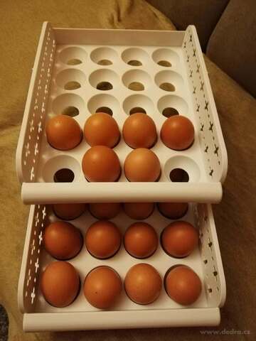 EGGY – stohovatelný organizér na 20 vajec z odolného plastu. Praktický stojan pro domácí i kupovaná vejce, vhodný do lednice i spíže. Úspora místa díky možnosti stohování.