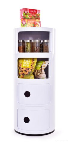 Praktičnost, originalita a design v jednom – to je RONDO kulatá skříňka se 4 policemi a posuvnými dvířky. Díky svému kulatému tvaru a chytrému řešení úložného prostoru se hodí do každé místnosti – od koupelny, přes kuchyni až po obývák nebo dětský pokoj. Každou polici můžeš uzavřít posuvnými dvířky, takže bude obsah chráněný před prachem a působí vždy uklizeně.