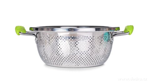 Cedník má stabilní základnu, která zajistí bezpečnou manipulaci.