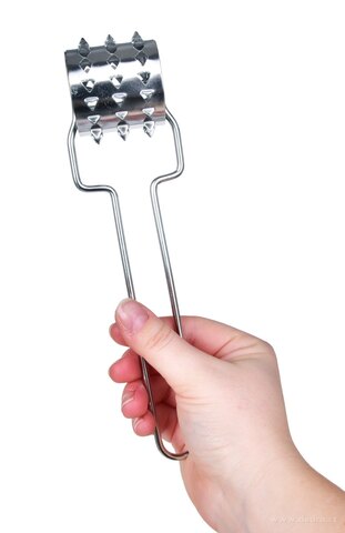 MASOŠŤOUCH je moderní tenderizér, který nahradí klasickou paličku na maso a posune přípravu na vyšší úroveň. Ostré nerezové hroty během válečkování nařežou a zkrátí svalová vlákna, takže maso zůstane křehké, šťavnaté a perfektně připravené pro pečení, smažení či grilování.