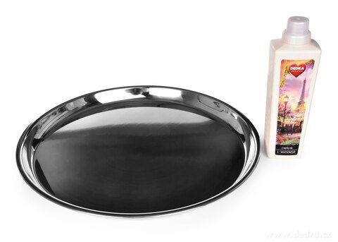 Po použití omyj teplou vodou s jemným prostředkem a osušte do sucha měkkou utěrkou, aby si tác zachoval lesk. Nepoužívej abrazivní drátěnky – mohou poškrábat povrch.