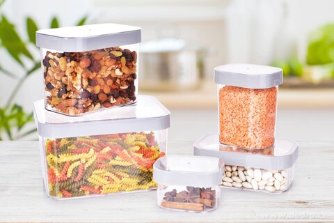 – Udrží mouku, vločky, těstoviny, luštěniny, oříšky v suchu