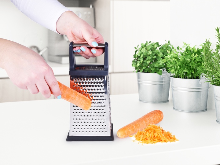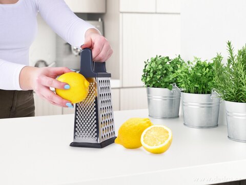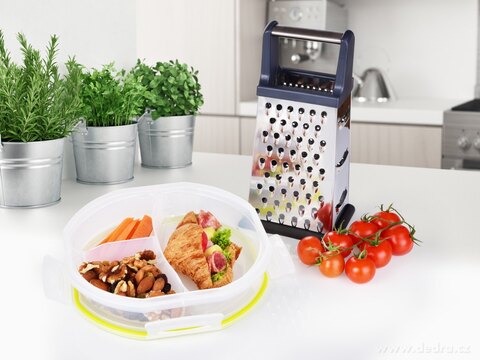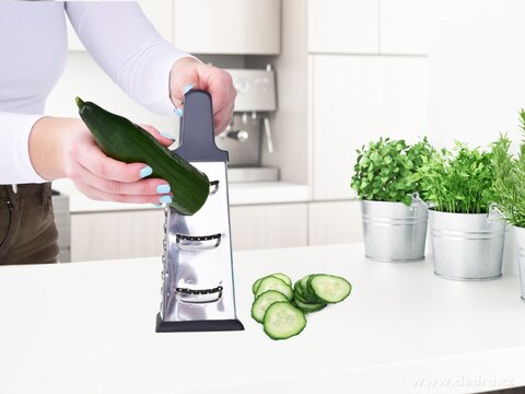 Každá strana má jiný typ ostří – jemné strouhání, hrubé strouhání, plátkování a krouhání, takže zvládnete různé kuchyňské úkoly s jediným nástrojem.