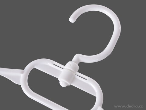 Sada 4 plastových multifunkčních ramínek PRAKTIK s otočným háčkem, DUO zavěšením (horní i spodní lišta) a očkem na doplňky šetří místo ve skříni a udrží oblečení přehledně uspořádané. Ideální na košile, kalhoty, šátky i opasky doma i na cestách.