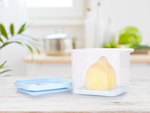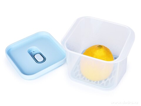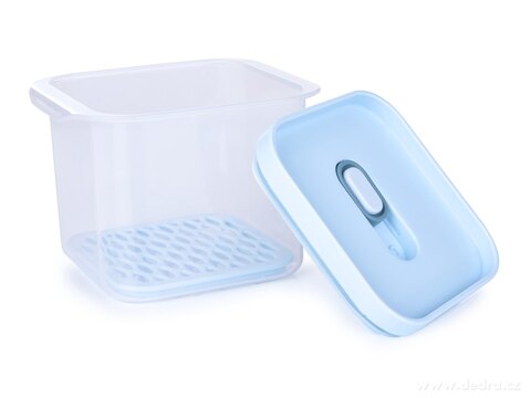 Dóza HERMETIC FRESH (580 ml) je vybavena prodyšnou/odkapávací mřížkou, která udržuje potraviny v suchu a déle čerstvé, protože umožňuje cirkulaci vzduchu a brání uložení potravin ve vlhkosti. Víko se silikonovým těsněním a ventilem zajistí hermetické uzavření – nic se nevysype ani nevyteče. Ideální na sýry, salámy, saláty, bylinky, chlebíčky, ovoce i dezerty.
