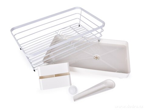 Praktický odkapávač s odnímatelným spodním tácem a vrchní kovovou částí.