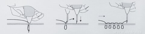 Tento postup vyšívání neustále opakujeme. Při vytvoření smyčky posuneme jehlu o malý kousek vedle a uděláme nový otvor do látky a tím vznikne nová smyčka.