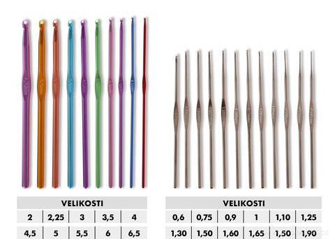 22 ks sada háčků na háčkování v pouzdře z eko kůže. Obsahuje 10 ergonomických barevných háčků (2–6,5 mm) a 12 jemných kovových háčků (0,6–1,9 mm). Ideální pro všechny druhy háčkování. Elegantní a praktické balení.