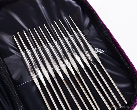 22 ks sada háčků na háčkování v pouzdře z eko kůže.