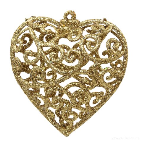 Zahalte své Vánoce do zlatavého lesku a jemného krajkového vzoru, který působí luxusně a přitom křehce. Tyto závěsné srdíčkové ozdoby přinášejí do interiéru pocit radosti, krásy a sváteční pohody.