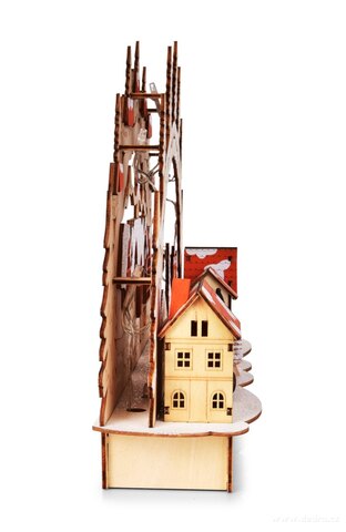ZIMNÍ MĚSTEČKO je jako pohled do pohádkového příběhu. Zasněžené střechy, postavičky a drobné prvky působí realisticky a zároveň romanticky. LED světlo oživuje celou scénu a promění ji v malou sváteční pohádku.