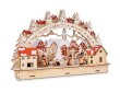 Svítící dřevěné městečko se zasněženými domečky a postavičkami vypráví příběh Vánoc plný klidu, světla a pohody. LED osvětlení dodává dekoraci hřejivou atmosféru a zvýrazňuje každý drobný detail. Precizně řezbovaná dekorace s šířkou 45 cm se stane skvostem každého svátečně laděného domova.