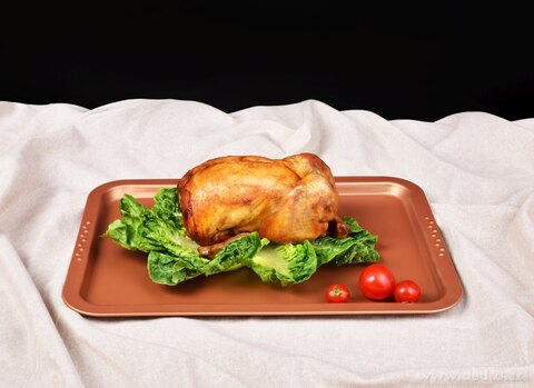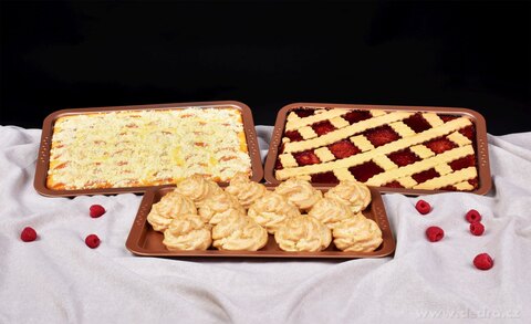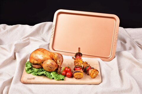 Nízký plech z odolné oceli se zlato-měděným prémiovým nepřilnavým povrchem BIOPAN® GOLD – ideální pro každodenní pečení. Povrch zajišťuje dokonalé uvolnění pokrmů, snadné čištění a dlouhou životnost. Díky své výšce je skvělý pro přípravu nízkých buchet, cukroví, koláčů i pečeného masa a zeleniny.