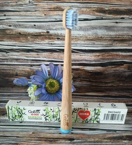 Dětský zubní kartáček GoEco® BAMBOO z bambusu s extra měkkými štětinkami pro šetrné čištění zubů a dásní. Doporučován stomatology a dentálními hygienisty. Ekologický, pohodlný do ruky a s barevným zakončením pro snadné rozlišení.