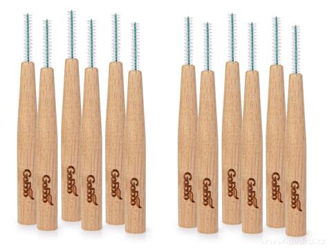 GoEco® BAMBOO mezizubní kartáčky 0,6 mm z bambusu s jemnými štětinkami a flexibilním drátkem. Šetrně čistí i ty nejjemnější mezizubní prostory, pomáhají předcházet kazům a zánětům dásní. Praktická sada 1+1 (2 × 6 ks).