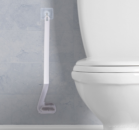 GoEco® doživotní WC kartáč se silikonovými štětinami, 39 cm. Snadno omyvatelný, hygienický a odolný. Díky speciálnímu tvaru se dostane i do těžko přístupných míst. Součástí je samolepicí háček na zavěšení.