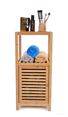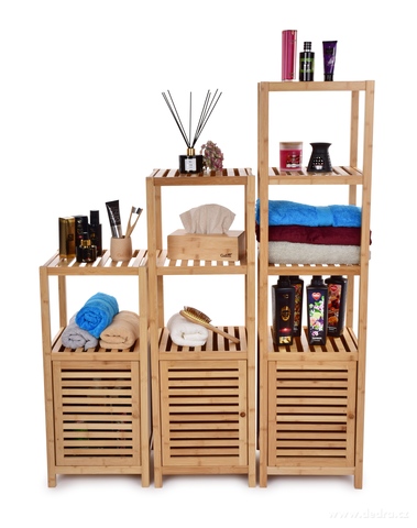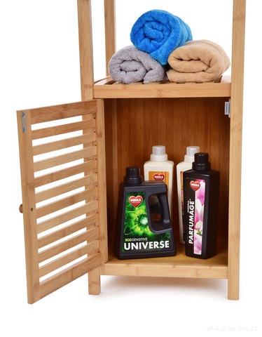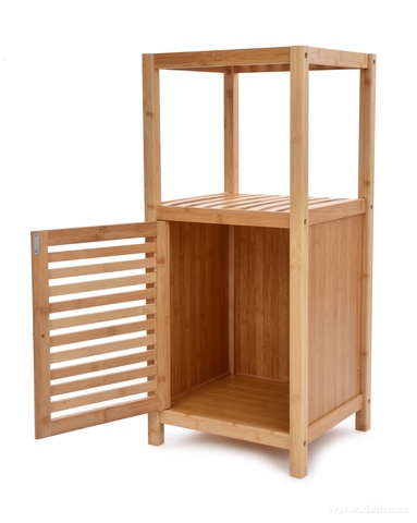 Kompaktní bambusový regál GoEco® s 1 policí a dvířky (80 cm). Stylový a ekologický doplněk z vysokotlakého bambusu, odolný proti vlhkosti. Ideální do koupelny, ložnice i předsíně pro přehledné ukládání věcí.