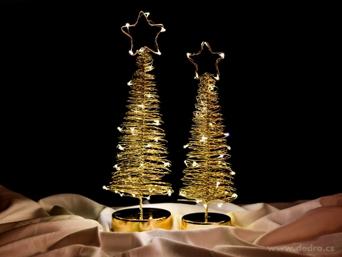 Elegantní LED dekorace HVĚZDNÝ ZÁZRAK – zlatý drátkový stromek s hvězdou o výšce 31 cm. Teplé světlo LED vykouzlí hřejivou atmosféru, ideální na stůl, komodu či parapet. Stylový doplněk pro moderní i klasické interiéry.