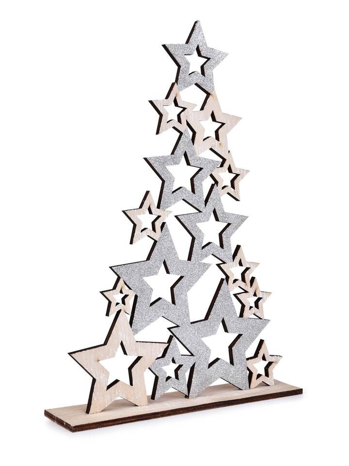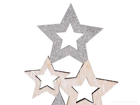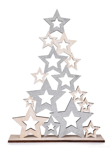 Elegantní dřevěný stromek ze stříbrných hvězd o výšce 39 cm. Stylová vánoční dekorace, která rozzáří tvůj interiér slavnostním leskem.
