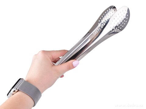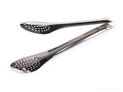 Kuchyňské kleště z kvalitní lesklé nerezové oceli s děrovaným designem pro snadné odkapání přebytečné tekutiny nebo tuku. Skvělé pro vaření, grilování i elegantní servírování.