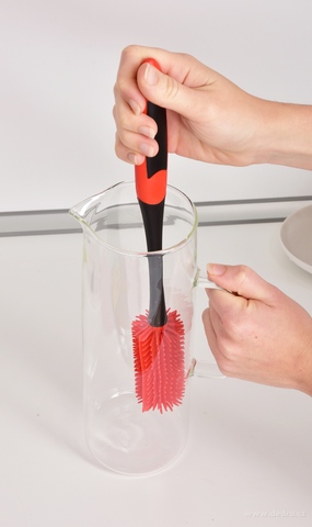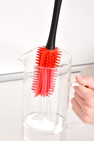 GoEco® silikonová štětka na lahve a vázy 2v1. Pružná hlava se silikonovými štětinami se přizpůsobí každému tvaru nádoby. Hygienická, omyvatelná a s dlouhou životností. Čistí účinně a bez poškrábání.