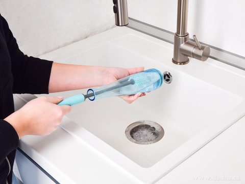 • Pružná hlava – přizpůsobí se tvaru lahví i váz a dostane se do úzkých míst.