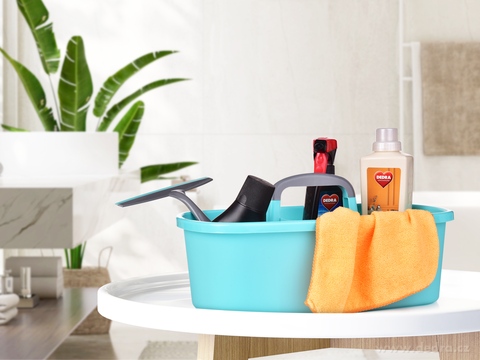 Mějte úklid vždy pod kontrolou! VODNESÚKLID v mintové barvě je praktický plastový nosič s madlem, který vám umožní pohodlně přenášet veškeré úklidové pomůcky. Díky chytrému tvaru a odolnému materiálu budete mít při úklidu vždy všechno pěkně po ruce.