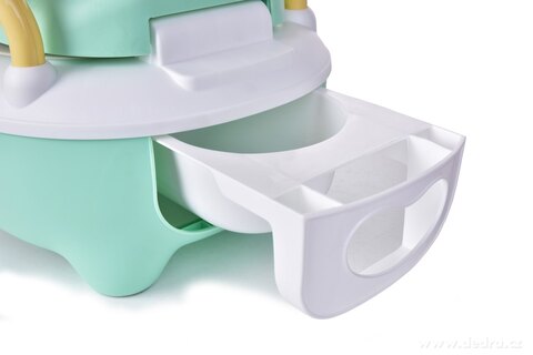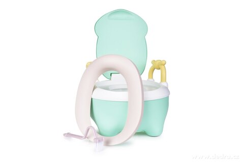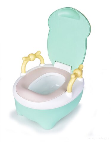 BABY HROCH dětský nočník v mátové barvě s roztomilým motivem hrošíka. S víkem, měkkou podložkou, rukojeťmi, protiskluzovými podložkami a odnímatelnou nádobou 1500 ml. Součástí kartáček.
