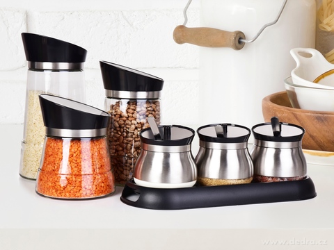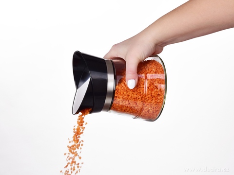Elegantní sada BOROSIL (600 ml + 900 ml + 1200 ml) je vyrobena z odolného borosilikátového skla a vybavena otočným dávkovacím víkem, které umožňuje sypké potraviny dávkovat jednoduše otočením – bez nutnosti odšroubovat víko. Dózy jsou dokonalým řešením pro stylové a přehledné skladování mouky, cukru, vloček, rýže, kávy, ořechů nebo těstovin.