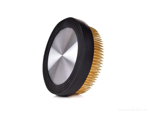 Aranžovací olověný ježek s mosaznými trny, masivní olověné tělo a odnímatelný gumový protiskluzový okraj.