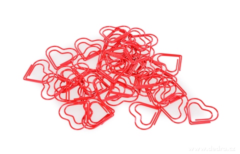 OFFICE balení 40 ks dekorativních kancelářských sponek ve tvaru srdce. Červené kovové sponky pro dokumenty, dárky nebo kreativní tvoření. Stylový doplněk do kanceláře i diáře. Pevné, znovu použitelné a výrazné.