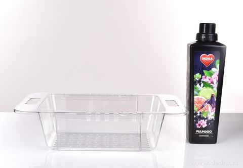 Praktický nastavitelný odkapátor do dřezu v průhledném provedení je univerzálním pomocníkem do každé kuchyně. Díky teleskopické konstrukci lze snadno nastavit šířku od 33,5 do 44 cm, takže se přizpůsobí většině kuchyňských dřezů.