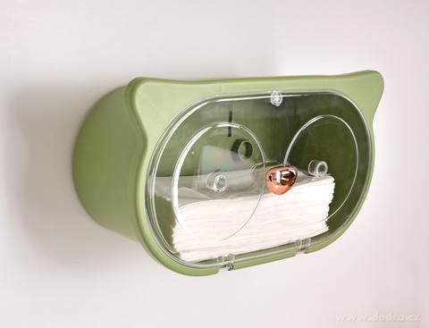 SOVA závěsná skříňka v olivové barvě pro 2 role toaletního papíru nebo ubrousky. Praktické řešení 2v1 – úložný box a horní polička. Jednoduchá samolepicí montáž bez vrtání.