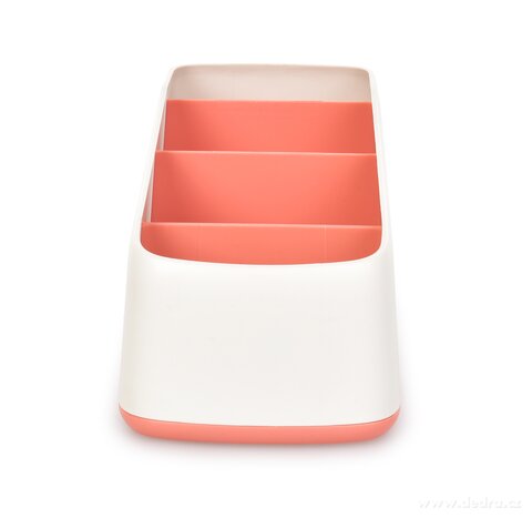 Praktický kancelářský organizér OFFICE se 4 přihrádkami na pera, tužky, papírky i kalkulačku. Minimalistický design, odolný plast, kompaktní rozměry 9,5×17,5×10 cm. Pomůže udržet pořádek na pracovním stole doma i v kanceláři.