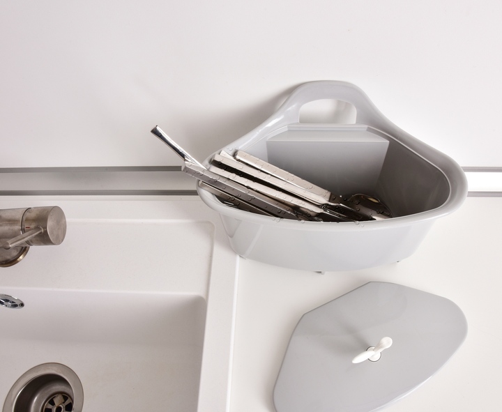 Odkapávač PRAKTIK je lehký, ale odolný pomocník, který využiješ nejen k odkapávání příborů a kuchyňského náčiní, ale i k jejich odkládání nebo podávání. Díky praktickému víku s madlem ho snadno přeneseš, využiješ třeba na mýti ovoce, jako košík na slupky či drobný kuchyňský odpad. Skvělé řešení pro menší kuchyně i milovníky pořádku.
