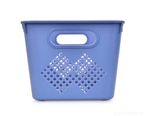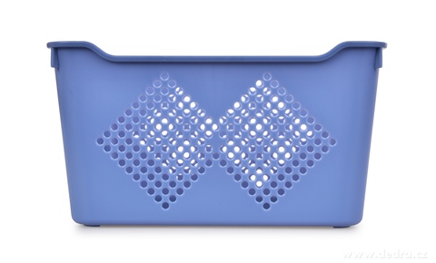 Perforovaný úložný box s uchy po stranách. Vyrobeno z pevného plastu