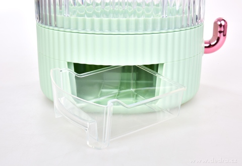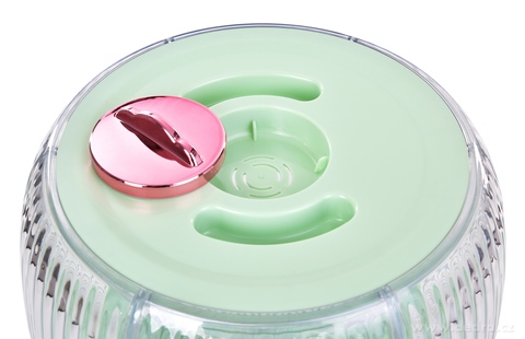 Rozměry: průměr cca 20 cm, výška 31 cm, zásuvka pro jídlo š 11,8 x h 13 x v 5,3 cm, objem cca 350 ml.