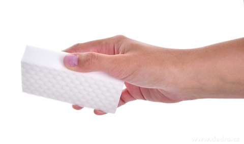 Vyrobeno z melaminové pěny. Rozměry cca š 6 x h 10 x v 2 cm.